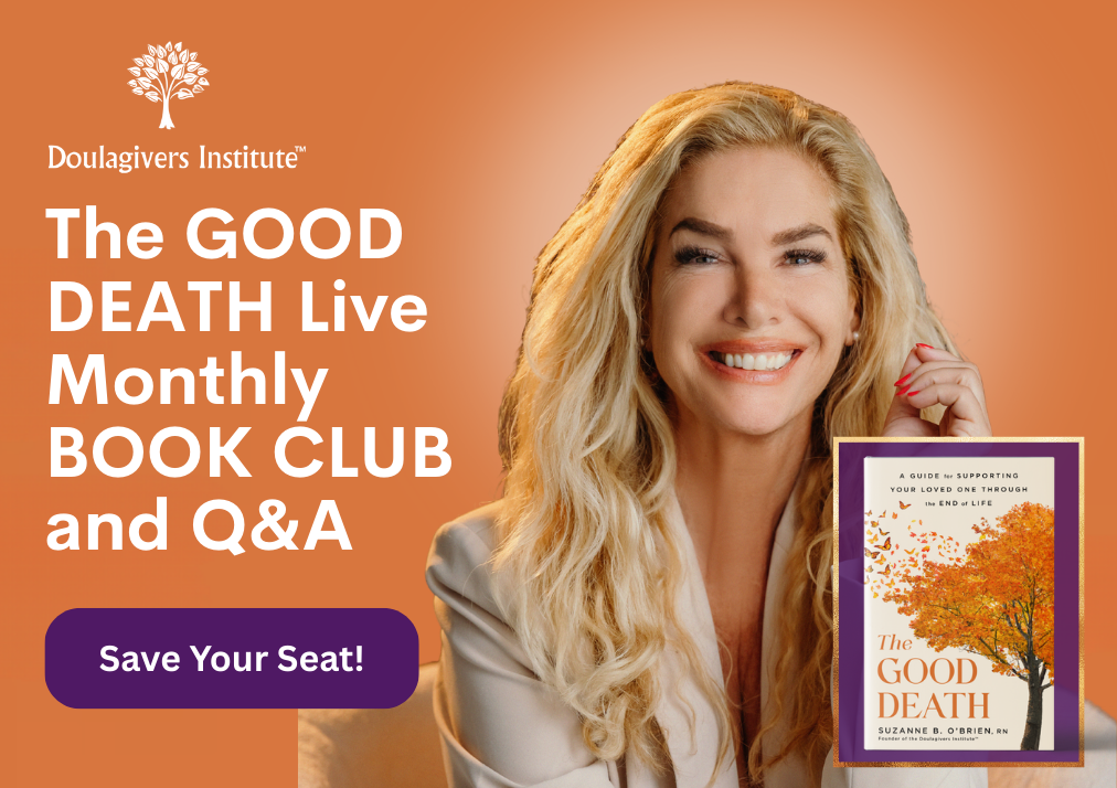Join us for The GOOD DEATH  Live BOOK CLUB EXPERIENCE: 12 Month Death and Dying Course with Suzanne B. O’Brien RN, a unique monthly opportunity to explore the transformative topics of death and life in a supportive and compassionate space.